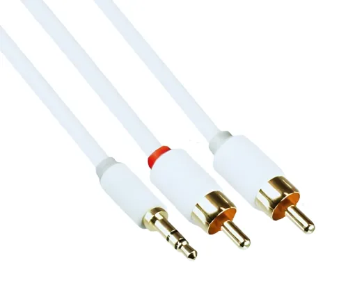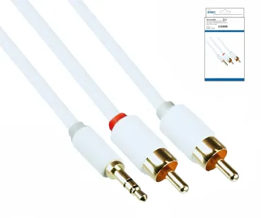 DINIC Monaco Range - Audio Kabel 3,5mm Klinkenstecker auf 2x Cinchstecker, 2m, Weiß