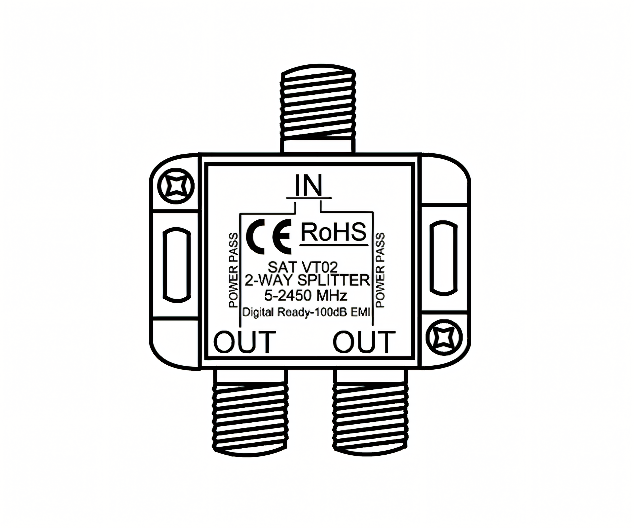 DINIC SAT-Verteiler für Satelliten-Anlagen, 2-fach, PB 5-2500 MHz
