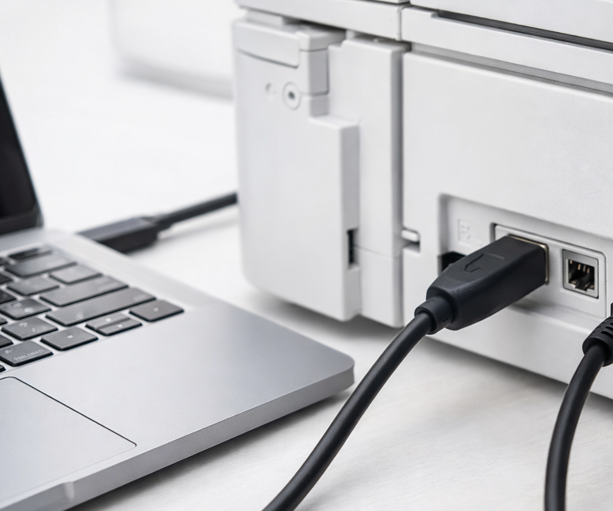 - USB-C Notebook oder PC mit USB-B-Drucker verbinden