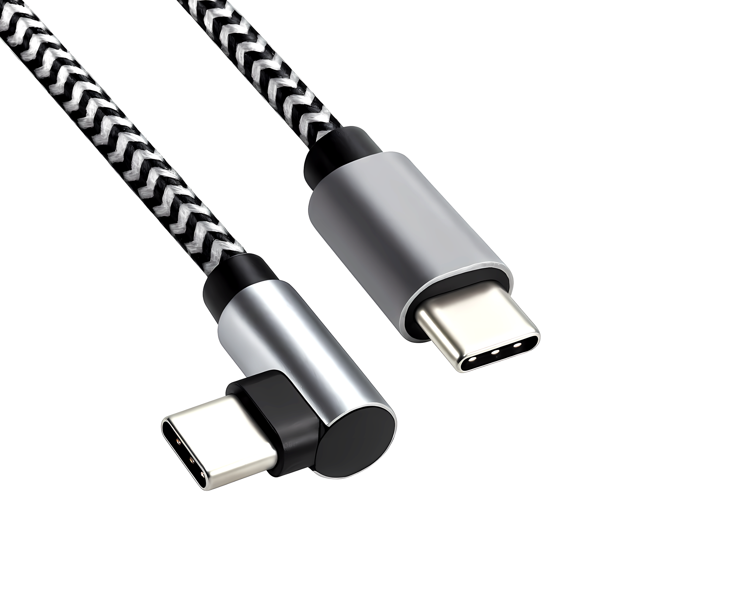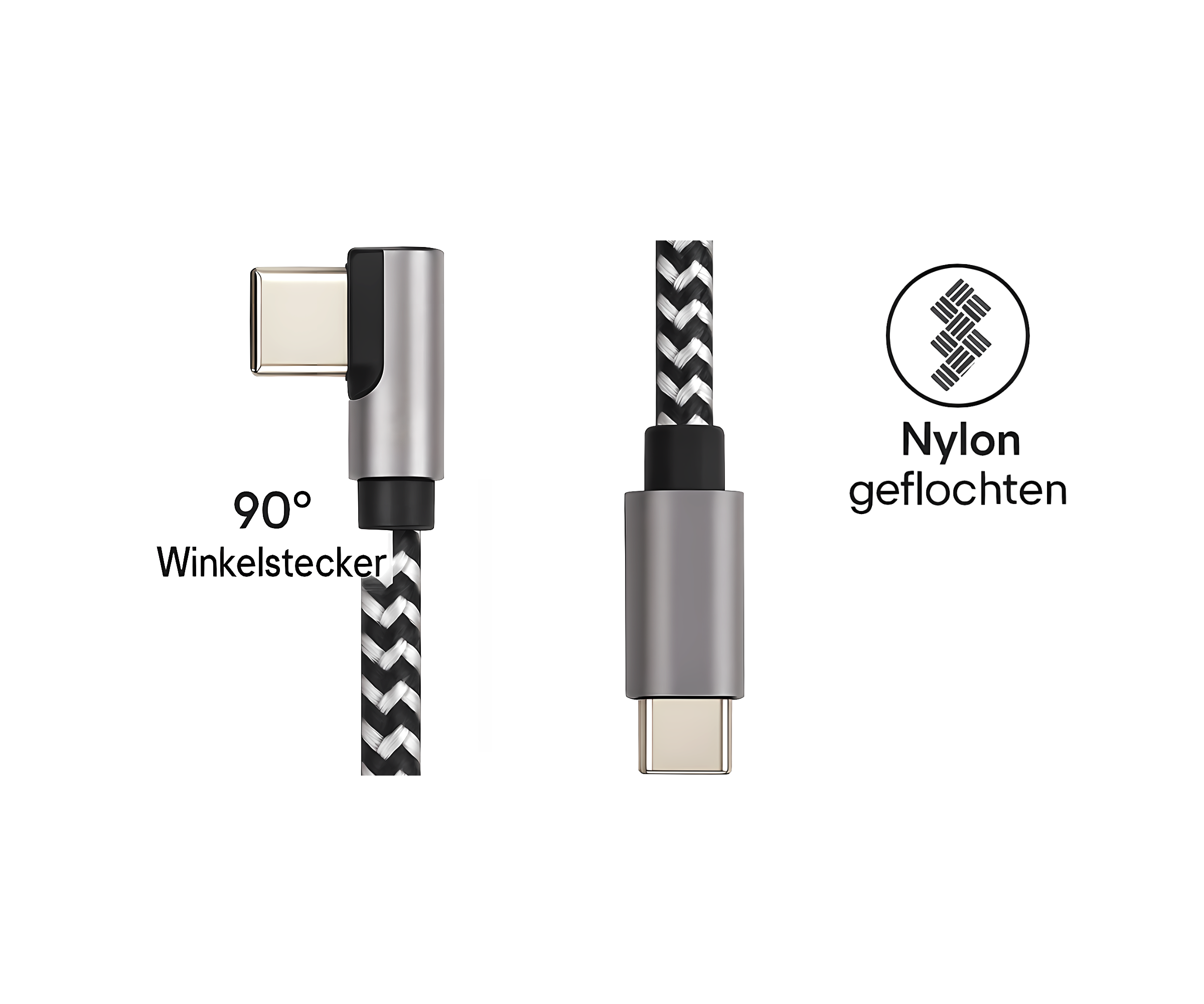 DINIC USB-C auf C 90° Ladekabel, HQ Alu Stecker, 60 W, Nylon, Space Grey, 1,00 m