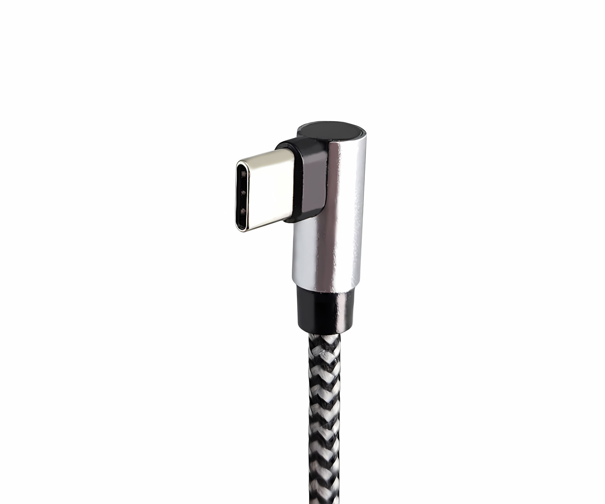 DINIC Premium USB-C auf C 90° Ladekabel, 1,00m Länge mit hochwertigen Alu-Steckern und Nylon-Ummantelung in Space Grey