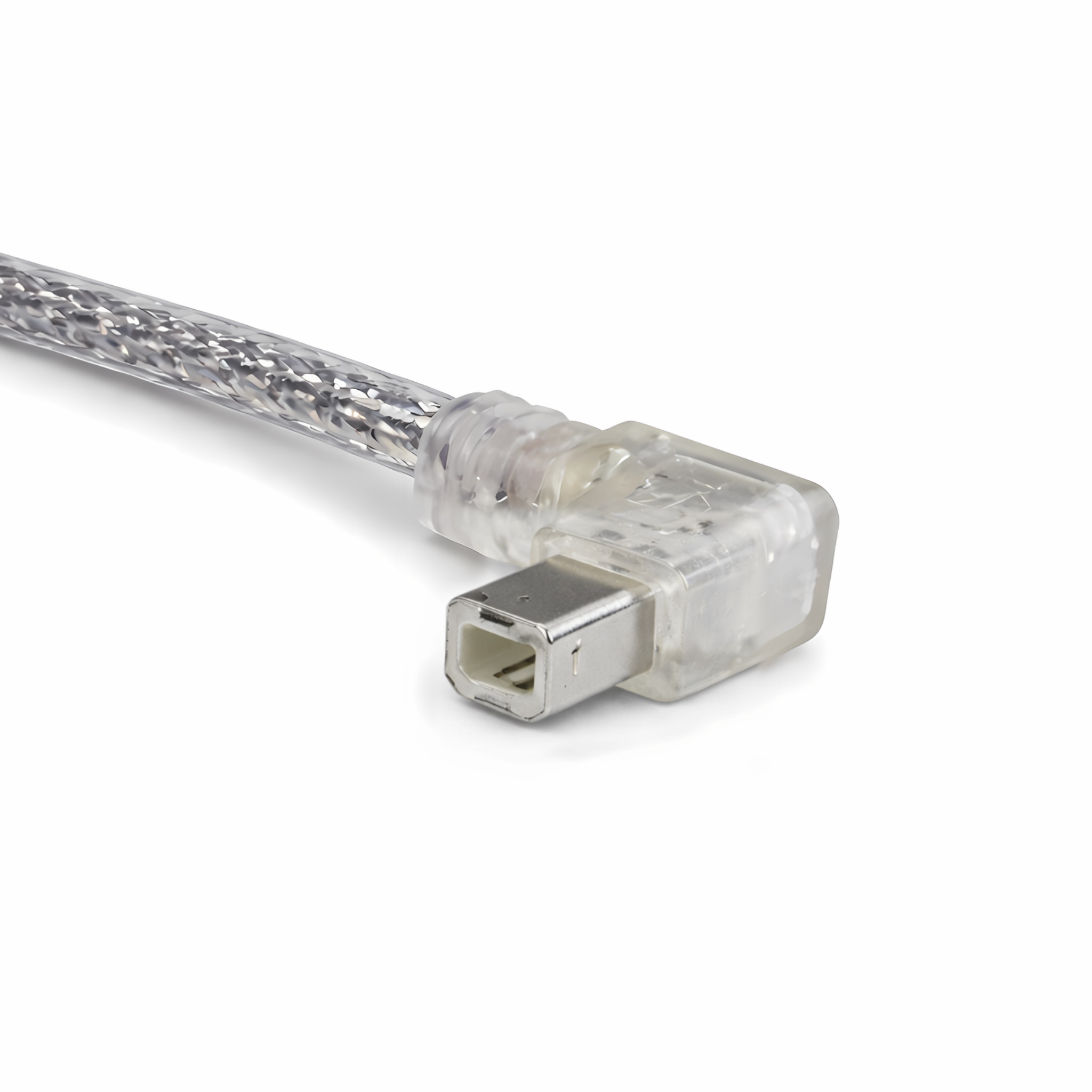 1x USB 2.0 Kabel A auf B Stecker, links abgewinkelt, 2 m, transparent