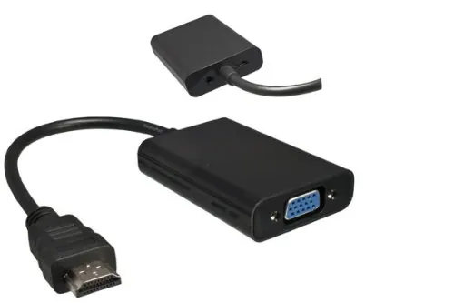 DINIC HDMI Adapter Typ A 19pol Stecker - VGA Buchse, mit Audio-Buchse, schwarz, 0,15m