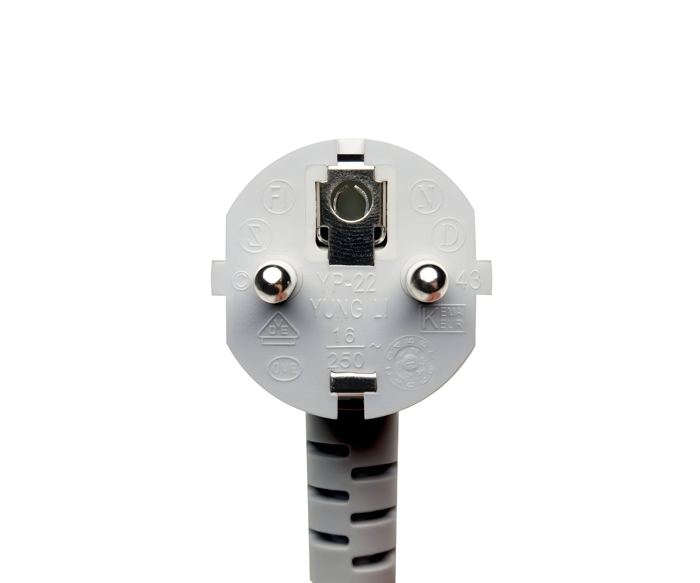 - Anschluss 1: 3-Pin Netzstecker CEE 7/7, Schutzkontaktstecker (Schuko) gewinkelt