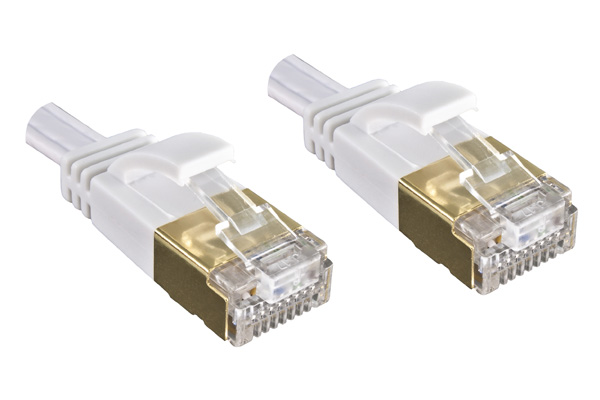 Das DINIC Flach-Patchkabel setzt auf vergoldete RJ45-Stecker und eine angespritzte Zugentlastung für optimierten Knickschutz. Die verdrillten Adernpaare sind in Metallfolie geschirmt (PIMF), was eine zuverlässige und störungsfreie Datenübertragung ermöglicht.