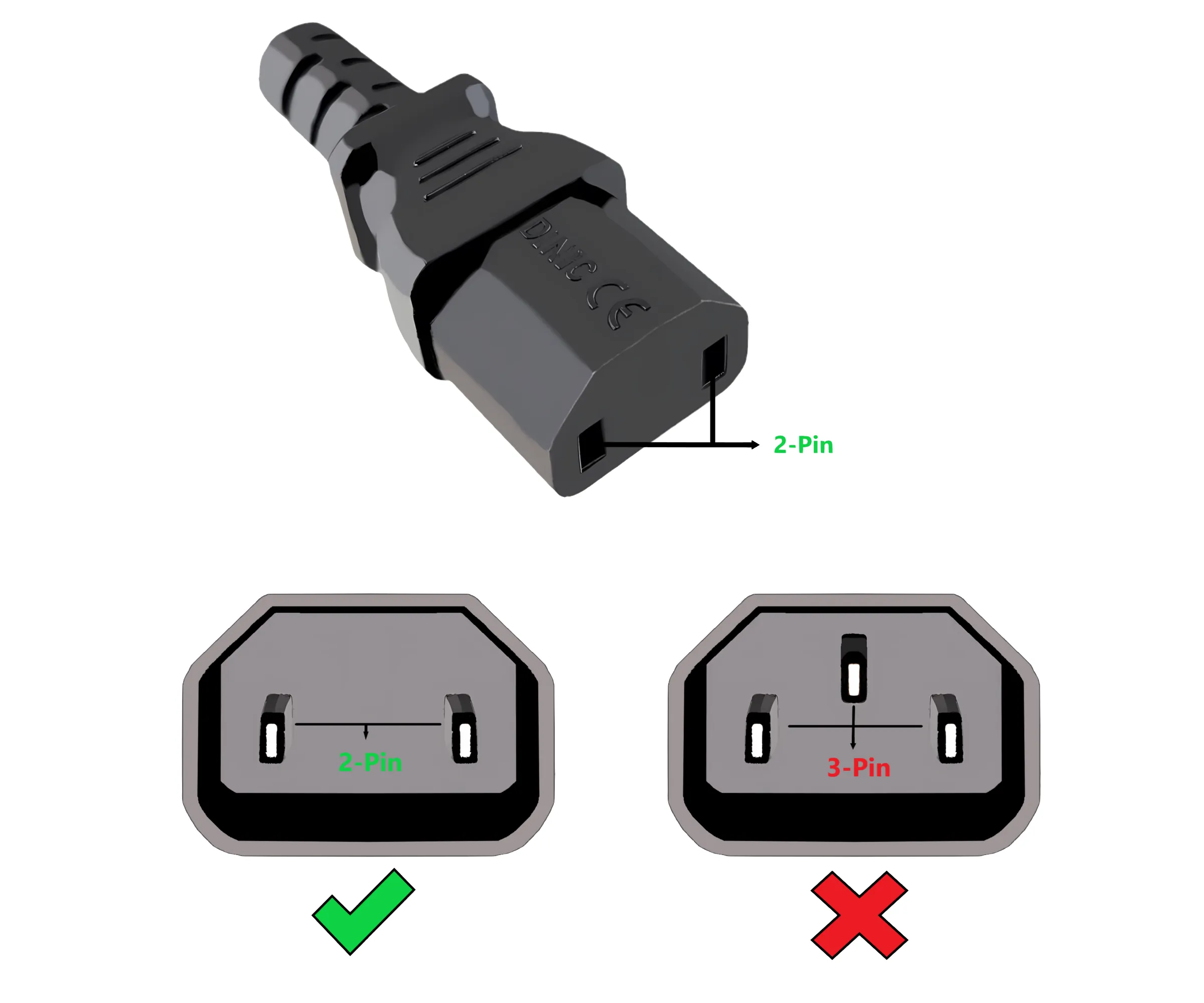 DINIC Netzkabel Europa CEE 7/17 auf C17, 1mm², Konturenstecker, VDE, 2m