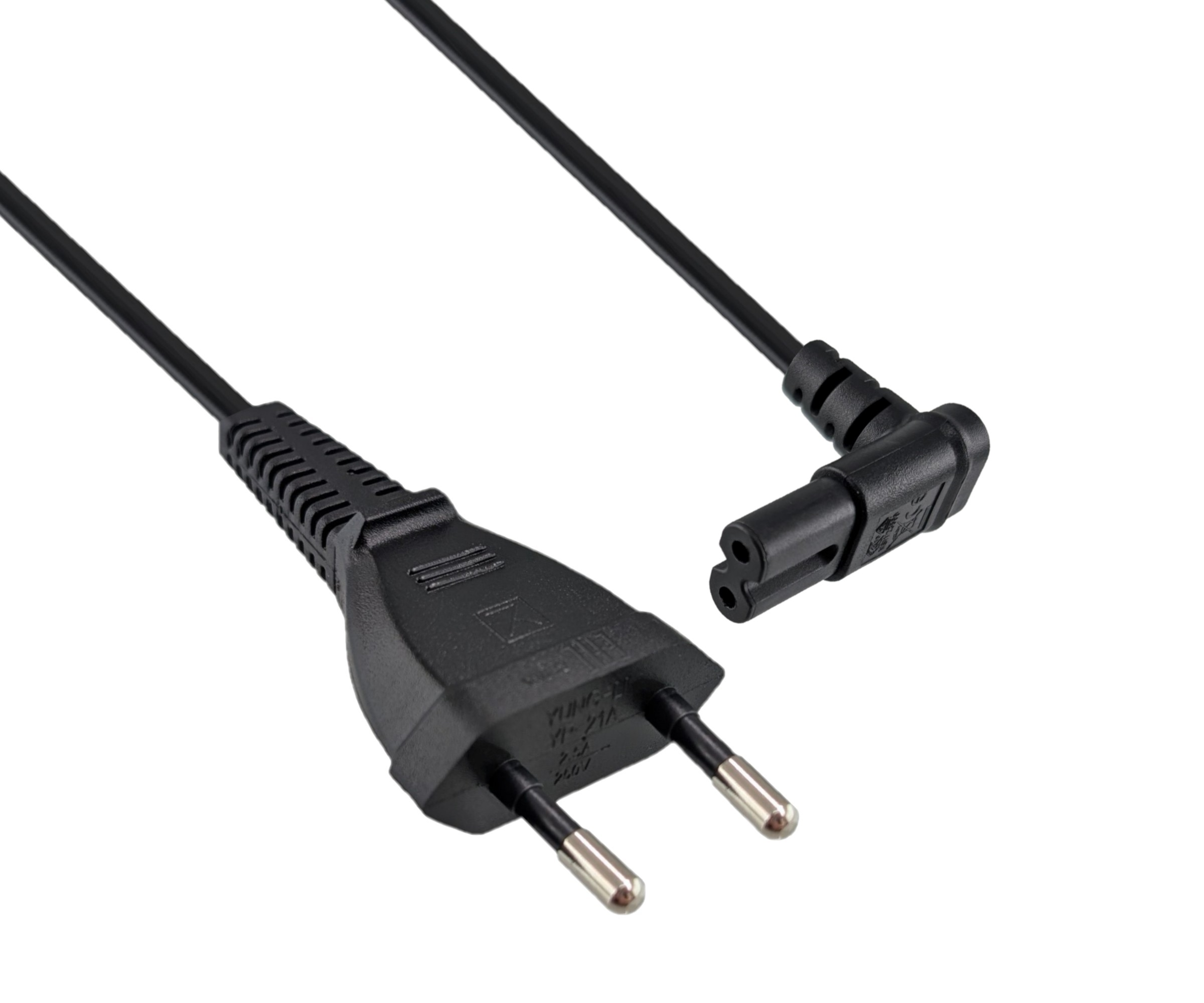DINIC Netzkabel mit Eurostecker auf C7, 90° nach unten/oben gewinkelt, 2m