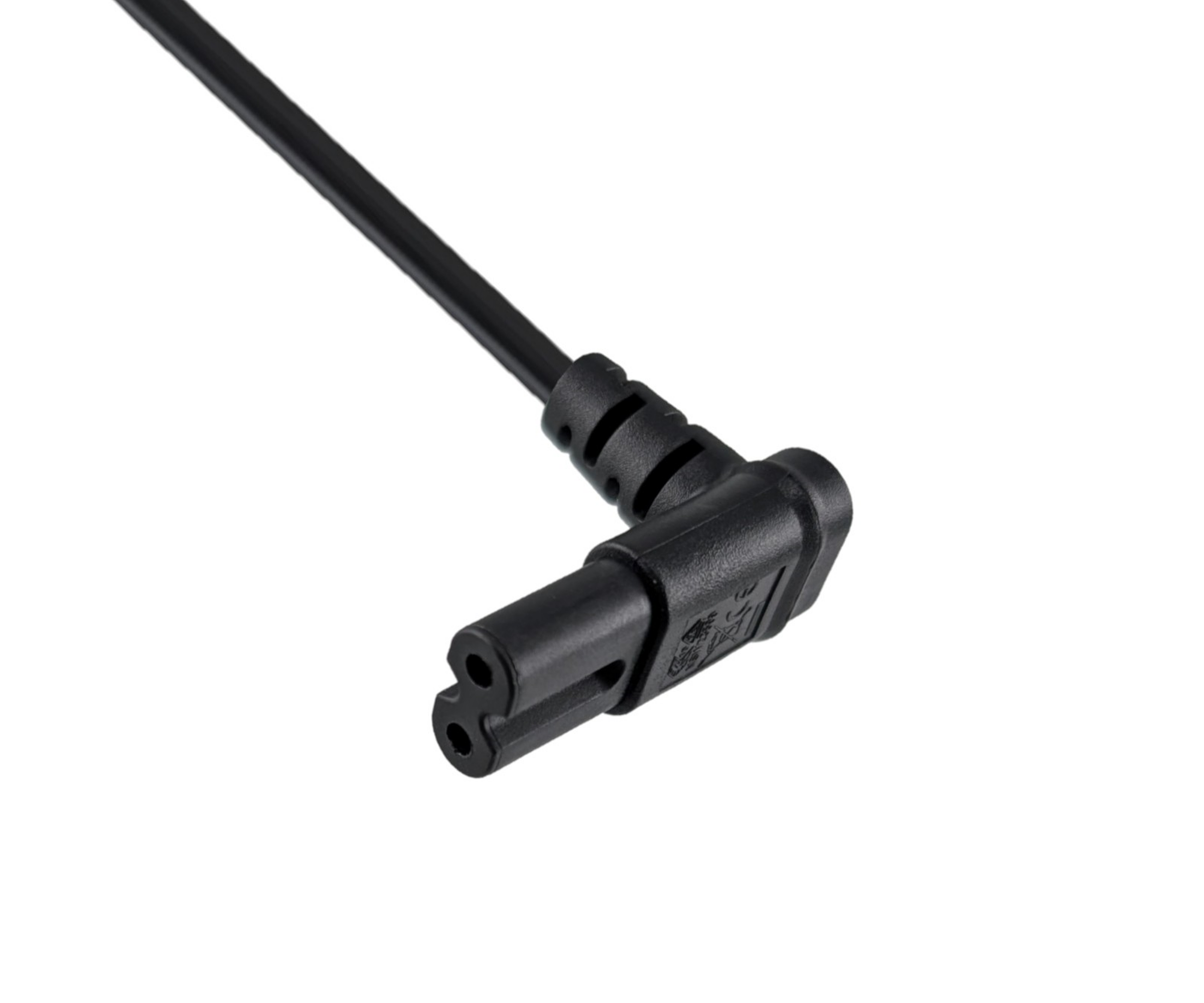1x DINIC Netzkabel Eurostecker auf C7, 90° nach unten/oben gewinkelt, 2m, schwarz, VDE-geprüft