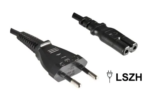 Halogenfrei LSZH Stromkabel - Eurostecker auf C7, schwarz, 1,8m