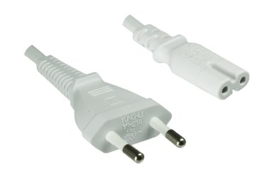 Preview: DINIC Stromkabel, Netzkabel Euro-Stecker auf C7 weiß, 2-pin Euro-8, VDE, 2m