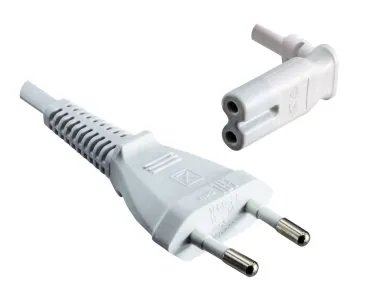 DINIC Netzkabel mit Eurostecker auf C7 90° unten, oben gewinkelt, weiß, VDE, 2m