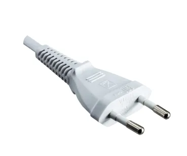 Mobile Preview: DINIC Netzkabel mit Eurostecker auf C7 90° unten, oben gewinkelt, weiß, 2m