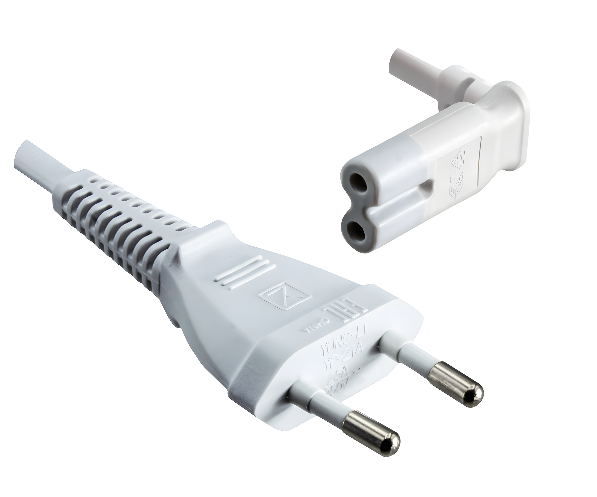 DINIC Netzkabel mit Eurostecker auf C7 90° unten, oben gewinkelt, weiß, 2m