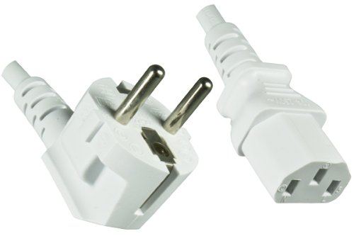 DINIC Netzkabel Europa CEE 7/7 90° auf C13, 0,75 mm², VDE, weiß, Länge 1,80m