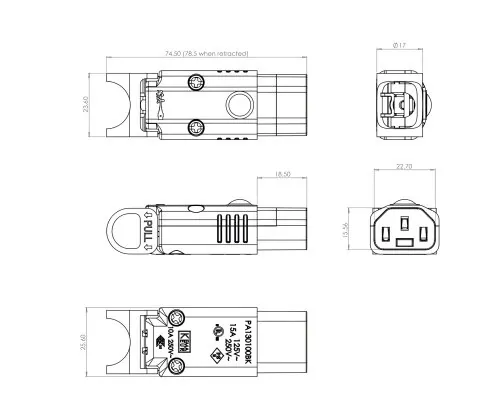Preview: DINIC IEC-LOCK C13 Stecker mit Verrieglung montierbarer Steckverbinder, locking