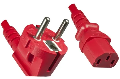 Preview: DINIC Netzkabel Europa CEE 7/7 90° auf C13, 1 mm², VDE, rot, Länge 5,00m