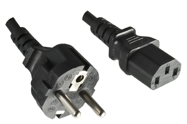 Hochwertiges Kaltgeräte-Anschlusskabel mit Schutzkontakt-Stecker und C13 Buchse