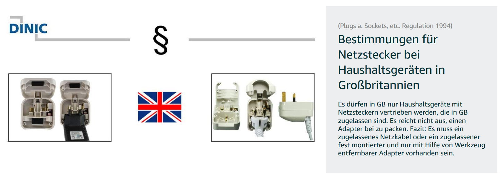 DINIC Stromadapter England, C7 auf UK Typ G 3A