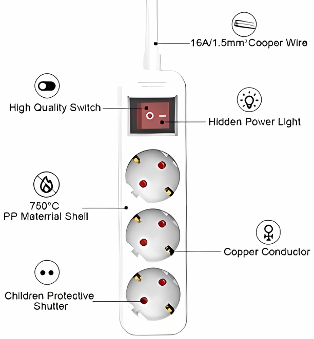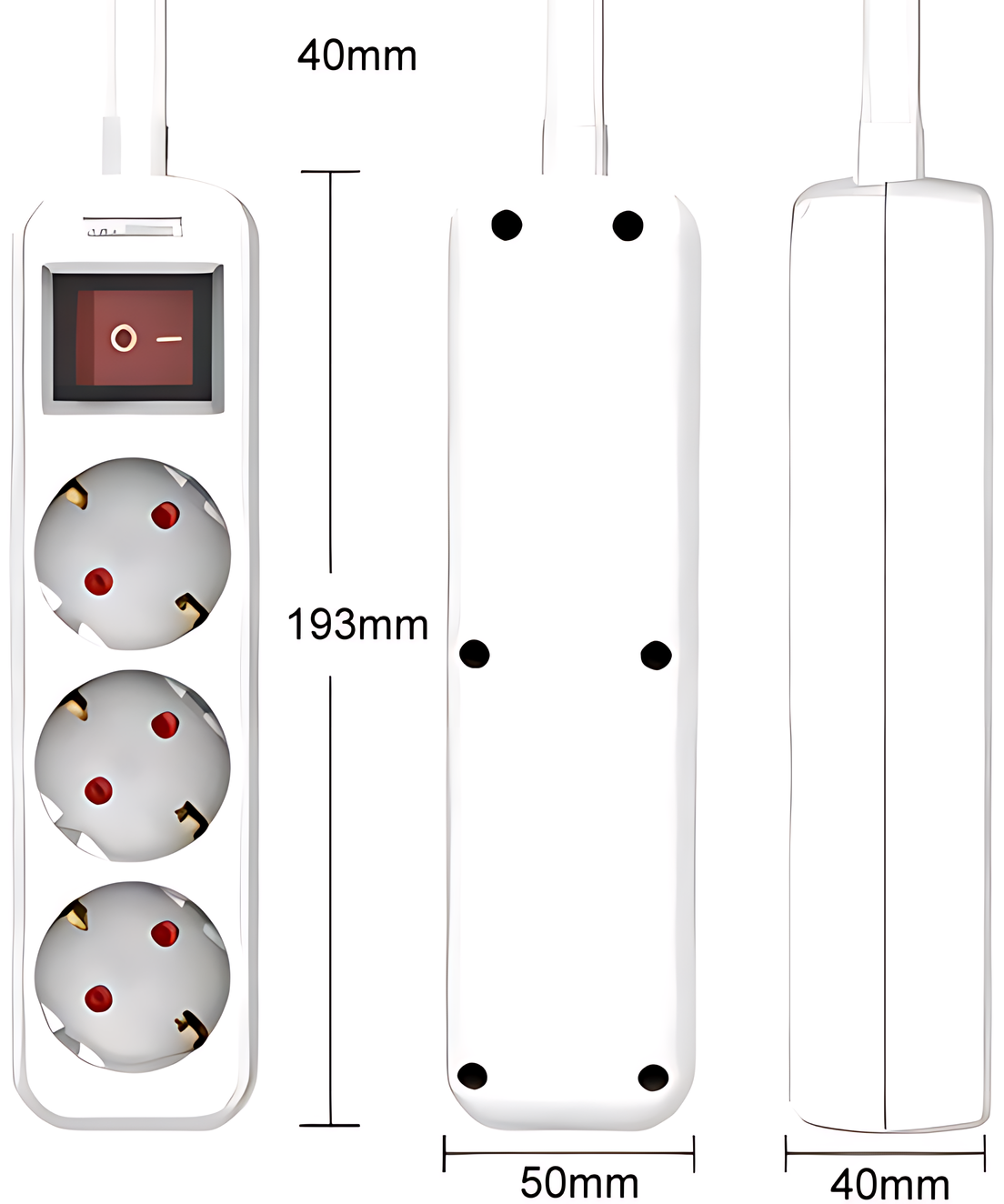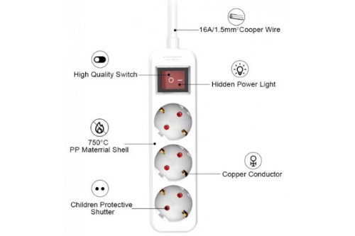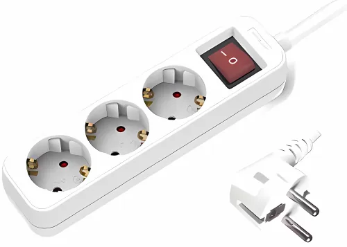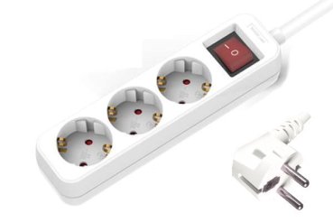DINIC Steckdosenleiste 3-fach mit Schalter, weiß, 1,3 m