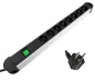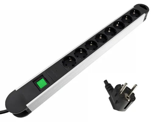 Diese Steckdosenleiste besteht aus hochwertigem, unempfindlichem Aluminium und hitzebeständigen Kunststoffeinsätzen. Sie ist mit acht 35° gedrehten Schutzkontakt-Steckdosen ausgestattet, die einen optimalen Berührungsschutz bieten. Der Schutzkontakt-Winkelstecker und das 1,4 Meter lange Kabel ermöglichen eine flexible Platzierung und Nutzung.