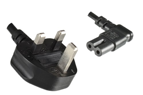 DINIC Netzkabel / Stromkabel Typ G auf seitlich 90° gewinkeltem C7 Stecker, Schwarz, 1,80m