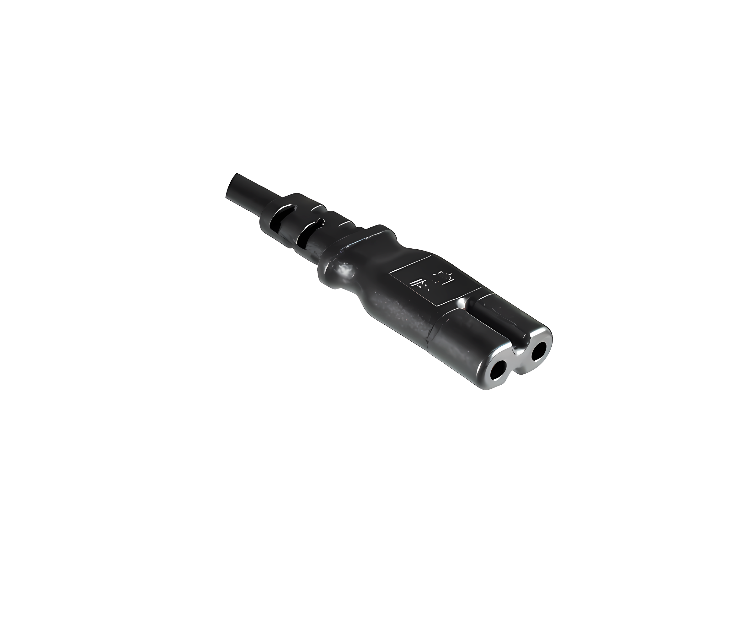- Gerader 2-poliger C7 Euro-Stecker (auch als Kleingerätestecker oder IEC-60320 C7 bekannt)