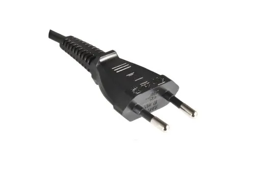 Wird auch als Eurostecker bezeichnet und ist definiert beim CENELEC Standard EN 50075 als "ein flacher vergossener Zweipolstecker, 2.5A/250V, mit Kabel für die Verbindung von Klasse II (class II) Equipment für Haushalte oder ähnliche Zwecke". Die koreanische Version hat zwei parallel Pins im Gegensatz zu der europäischen Version, die leicht zueinander geneigt sind für einen besseren Halt.