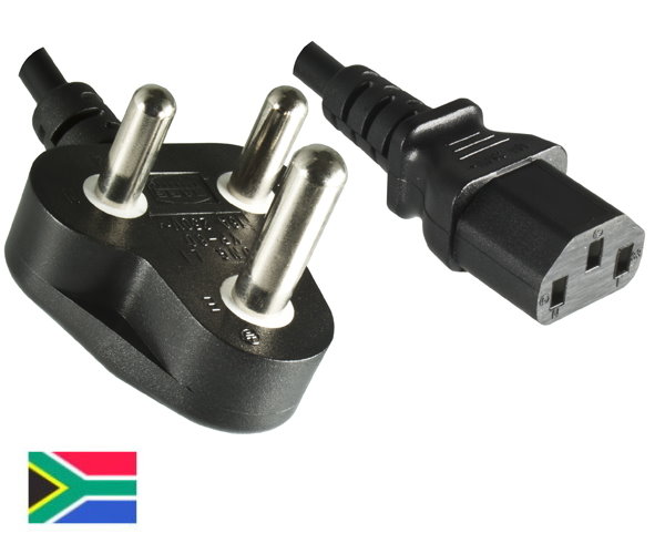 Stromkabel Südafrika (ZAF) - Typ M auf C13, schwarz