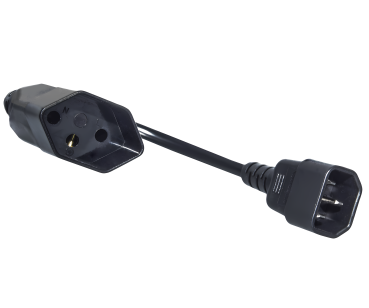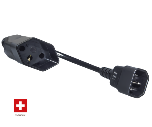 - Kabelart: Schweizer Typ J-Buchse zu Kaltgerätestecker C14