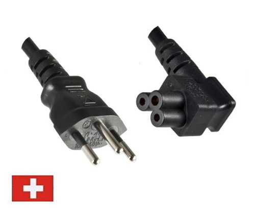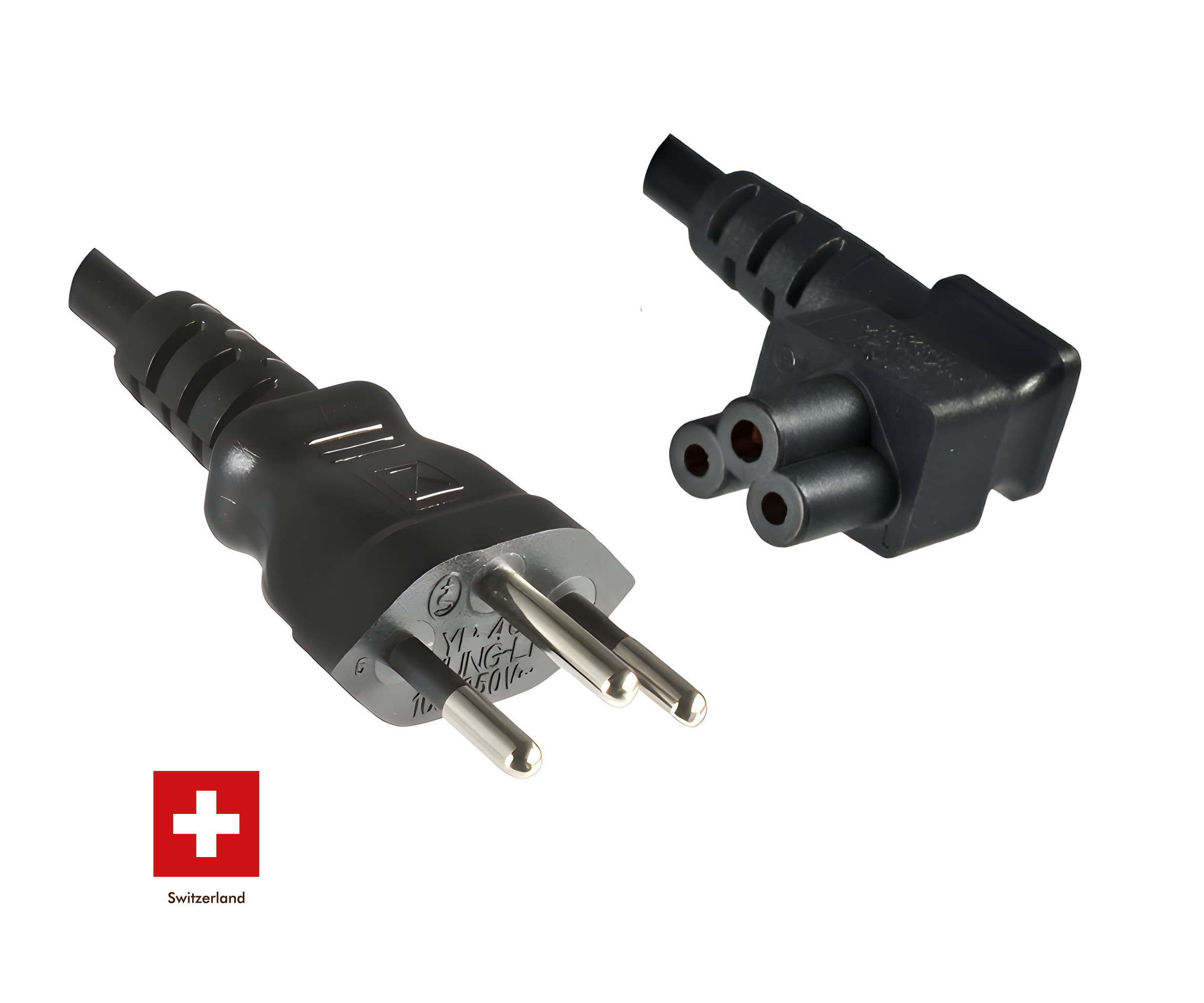 Stromkabel für die Schweiz - Typ J auf C5 gewinkelt, schwarz, 3m