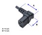 - Stecker 2: 3-pol Kaltgeräte-Stecker C13 unten abgewinkelt (Gerätestecker) für den Anschluss an eine C14 Buchse, Kaltgeräteanschluss (Geräteanschluss)