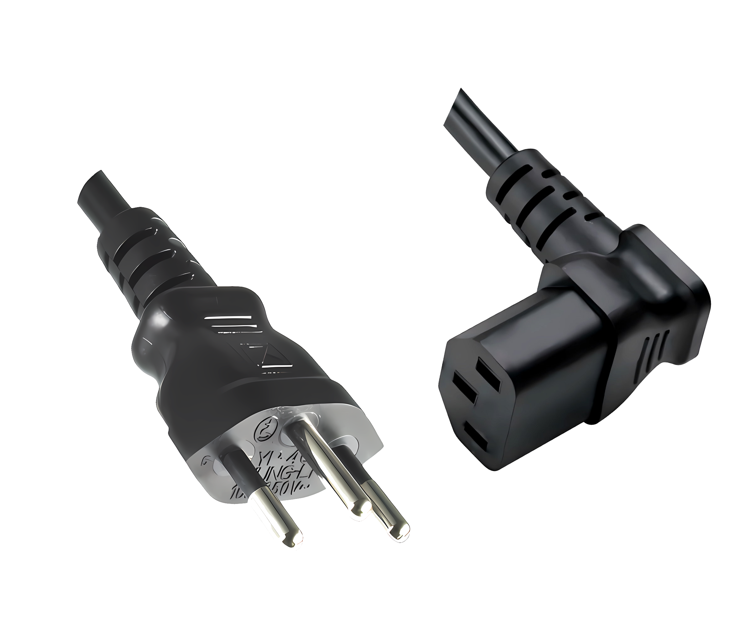 - Stecker 1: 3-Pin Schweiz Typ J (Typ 12) 3-polig, teilisoliert auf C13 nach unten abgewinkelt
