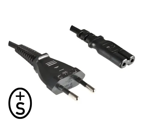 Mobile Preview: DINIC Netzkabel Typ C Schweiz auf C7, 0,75mm², CH 2-Pin, IEC 60884-1, SEV, 1,80m