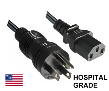 Dieses spezielle Hospital Grade Netzkabel/Stromkabel ist für den Einsatz in Gesundheitseinrichtungen, Krankenhäusern und anderen medizinischen Einrichtungen konzipiert. Es erfüllt alle strengen Anforderungen der UL-Spezifikation 60601-1 und ist somit ideal für den Anschluss von medizinischen Geräten und Vorsorgegeräten.