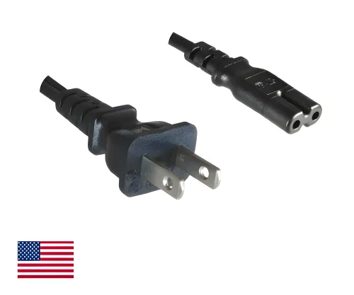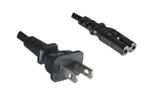 - Stecker: Typ A (NEMA 1-15P) auf C7 / 2-polig (YP-11/YC-13)