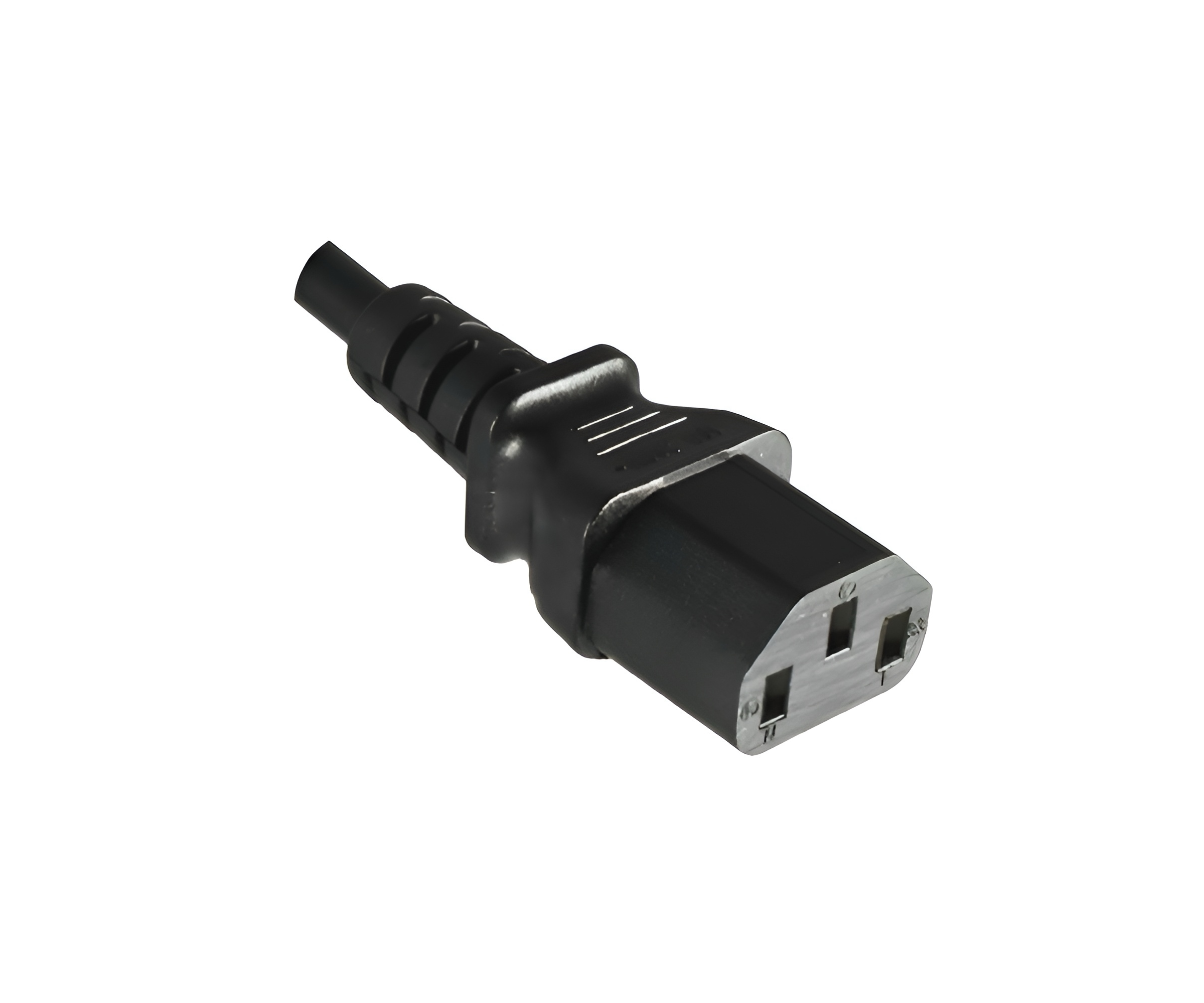 - Stecker 2: 3-poliger Kaltgeräte-Stecker C13, gerade für den Anschluss an eine C14 Buchse.