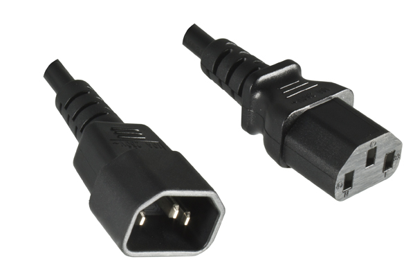 DINIC Kaltgeräteverlängerung C13/C14, 1,5 mm², 1,80 m, Schwarz
