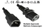 DINIC Kaltgeräteverlängerung C13 auf C14, 1mm², Multi-Zulassungen, Schwarz, 5,00m