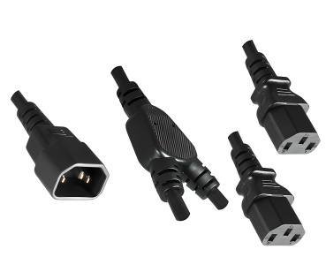 Preview: DINIC Y-Kaltgeräteverlängerung 1x C14 auf 2x C13 IEC Splitter, Y-Kabel, schwarz, 2m
