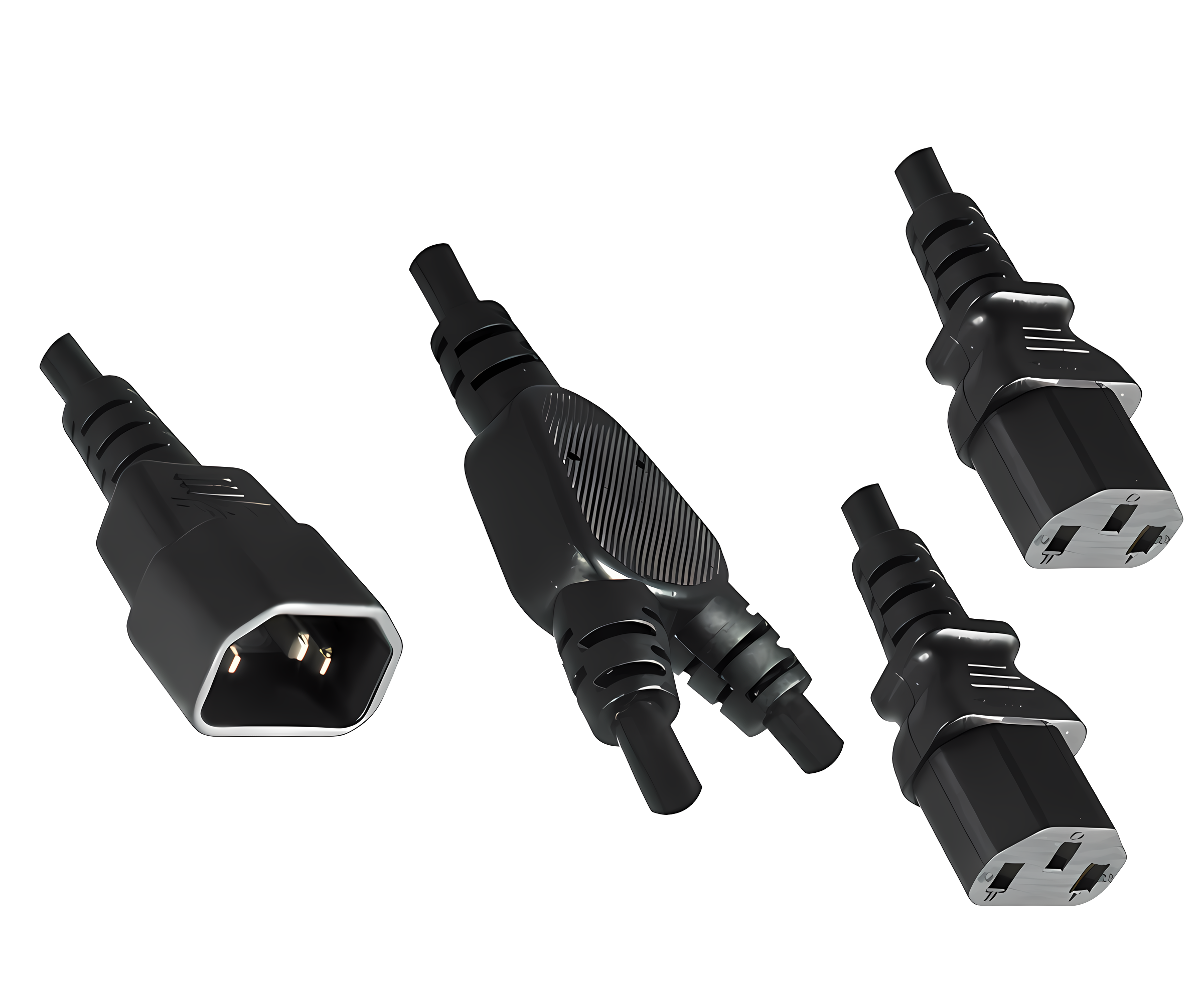 DINIC Y-Kaltgeräteverlängerung 1x C14 auf 2x C13 IEC Splitter, Y-Kabel, schwarz, 2m