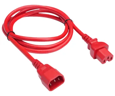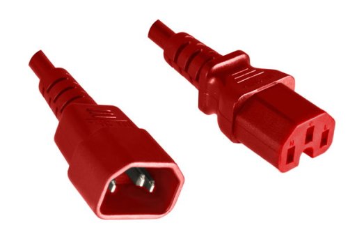 DINIC Warmgerätekabel C14 auf C15, 1mm², H05V2V2F3G 1mm², Verlängerung, rot, 1,5m