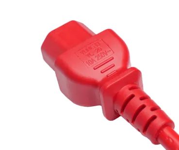 Preview: DINIC Warmgerätekabel C14 auf C15, 1mm², H05V2V2F3G 1mm², Verlängerung, rot, 1,5m