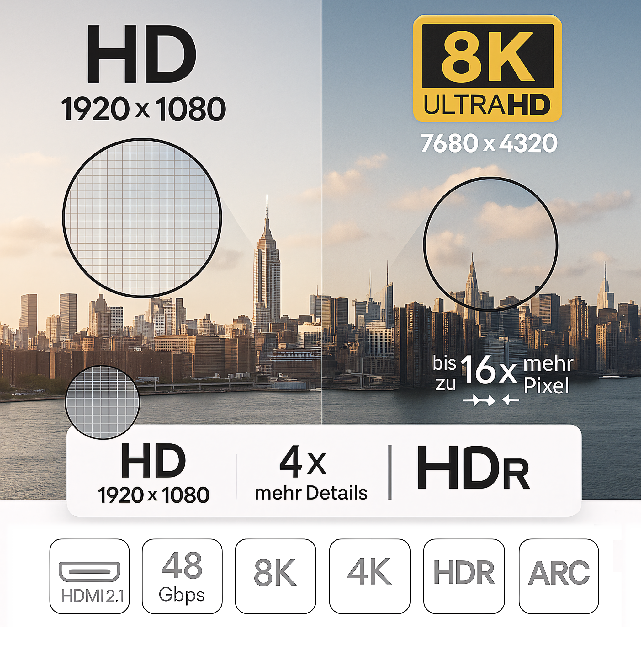 48 Gbps, 8K/60 & 4K/120 – stabil und störsicher · HDMI-8K-1PB